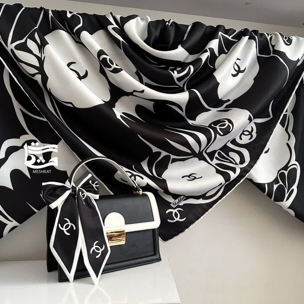 روسری گل شنل سفید و مشکی طراحی و تولید انحصاری مشکات